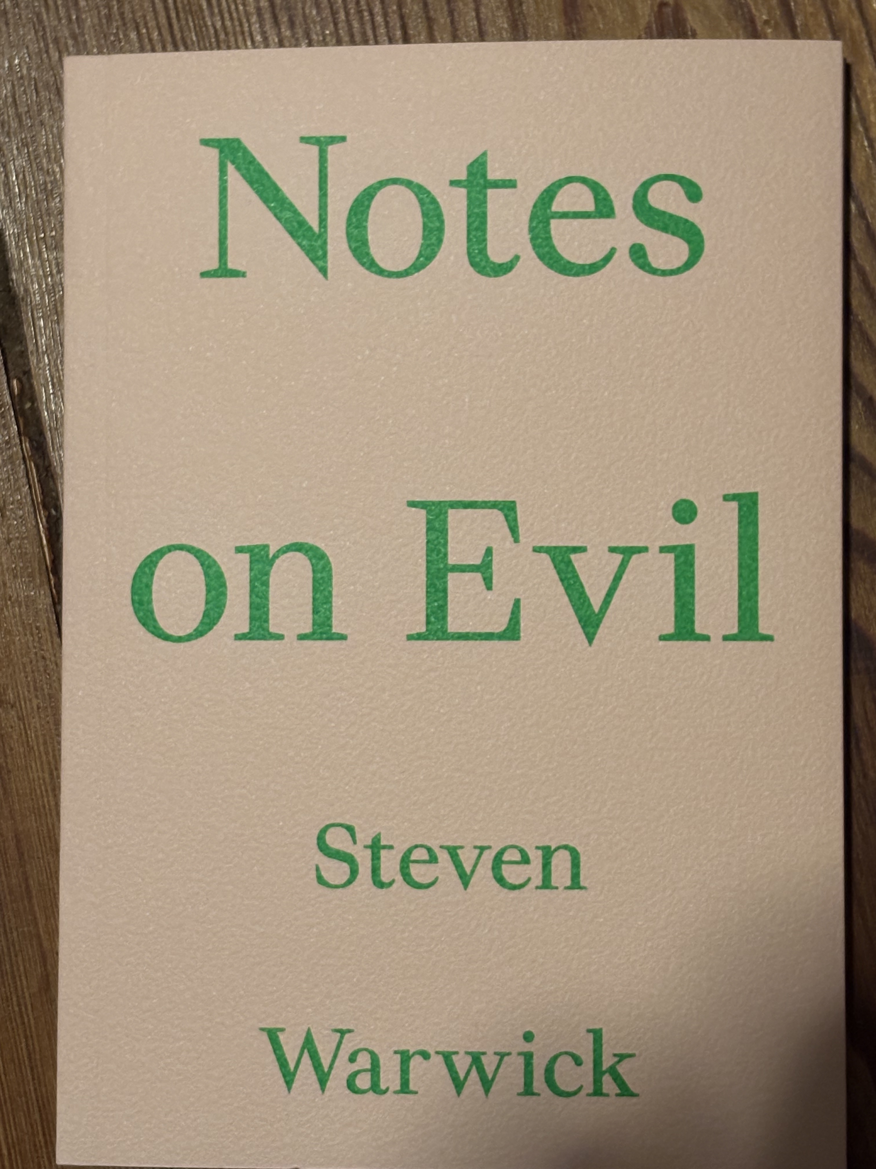 In the fourth title in our Critic’s Essay Series: in Notes on Evil, Berlin-based writer and artist Steven Warwick takes on the ontology of evil as mediated through music, art, and politics. Developing out of Warwick’s own performance practice, his book argues that cultural forms act as sites of libidinal investment in the problem of evil, and searches for a way out of this seemingly unavoidable tendency.